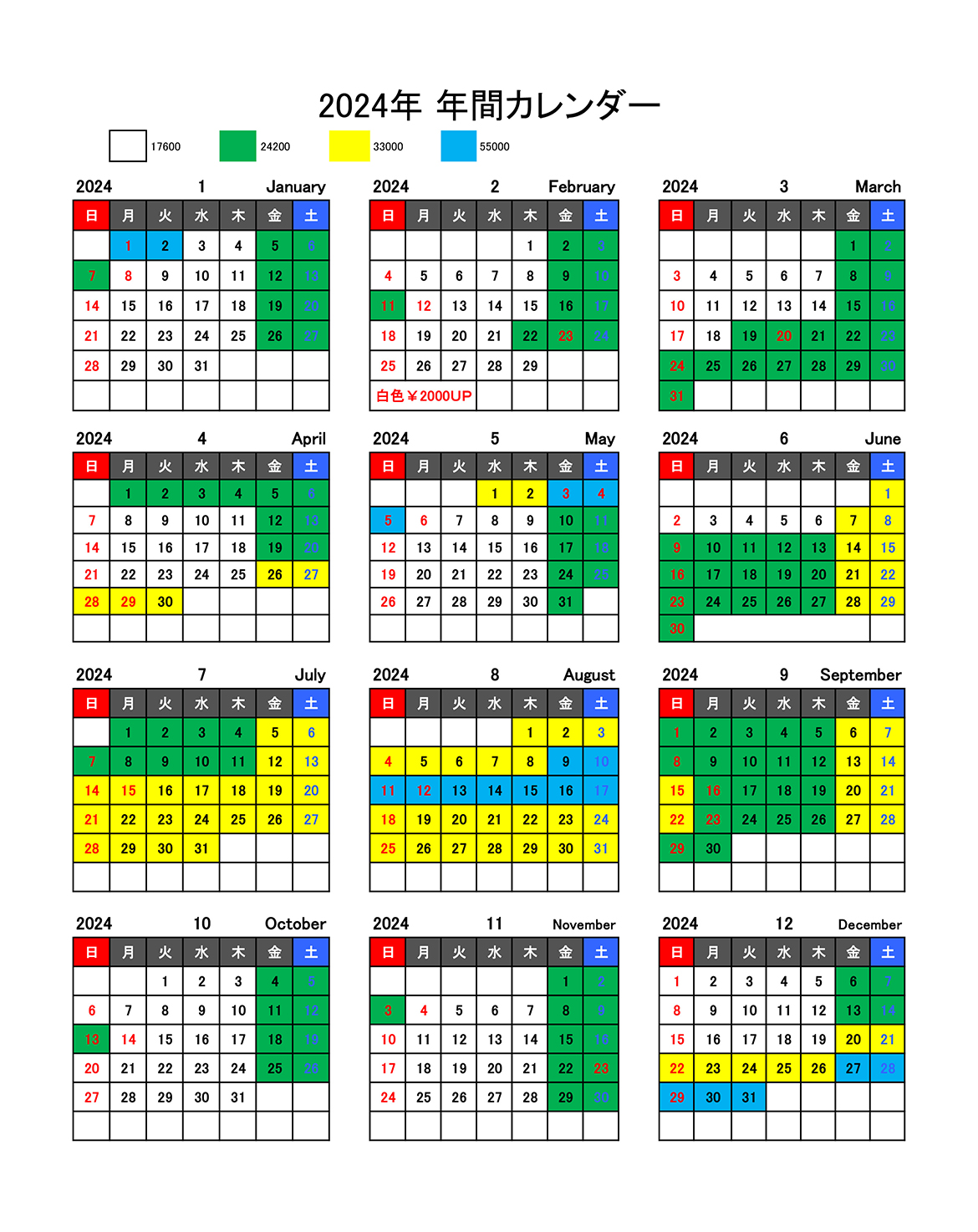 宿泊日の前日から起算してさかのぼって特日(GW/お盆/正月等のピーク時/カレンダー水色期間):